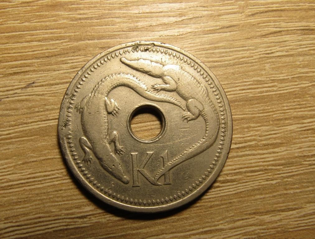 1 кина 1975 г. (Папуа Новая Гвинея, острова), фауна - Новогвинейский крокодил