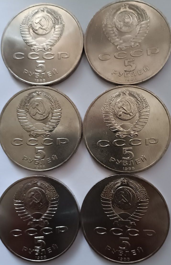 5 рублей, 1988 г., Киев, Новгород, Ленинград.