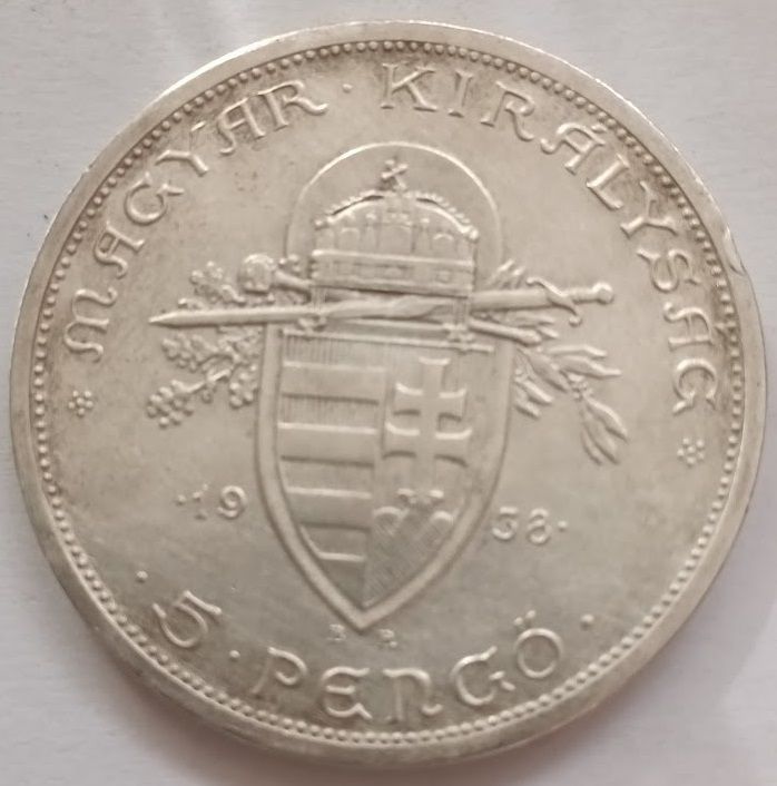 Венгрия, 5 пенго, 1938 г.